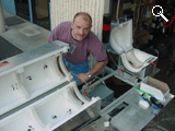 One of the designers making final preparation before the